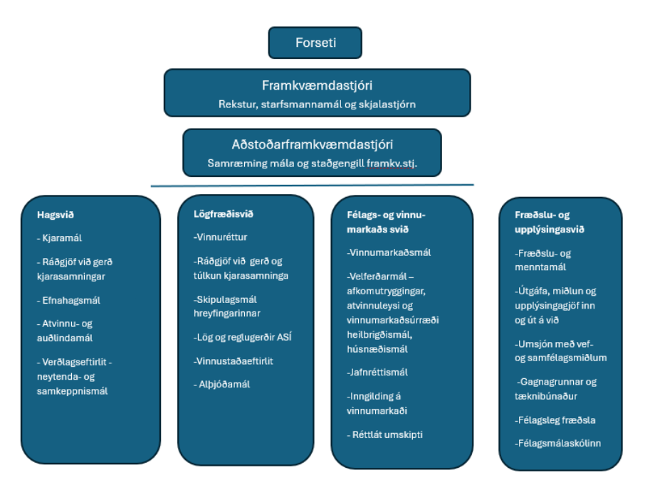 Ramminn fyrir skipulag starfsemi skrifstofu ASÍ skal vera með þeim hætti sem sýnt er á eftirfarandi skipuriti.